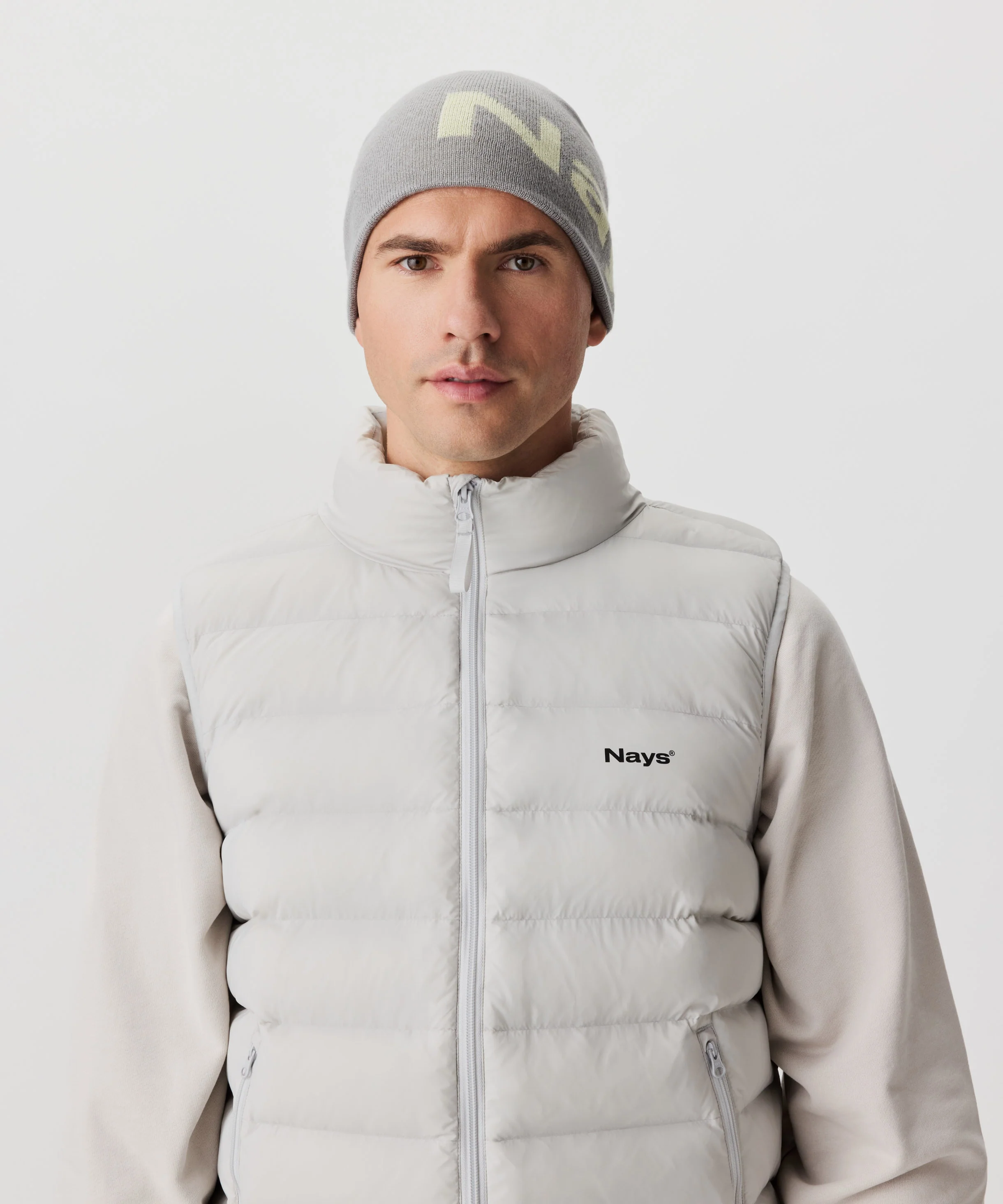 Die Nays Big Classic Logo Beanie in grau, gefertigt aus einer weichen Woll-Mischung, hält dich angenehm warm und trägt sich komfortabel. Das große, eingestrickte Nays Logo macht sie zu einem echten Statement-Piece.